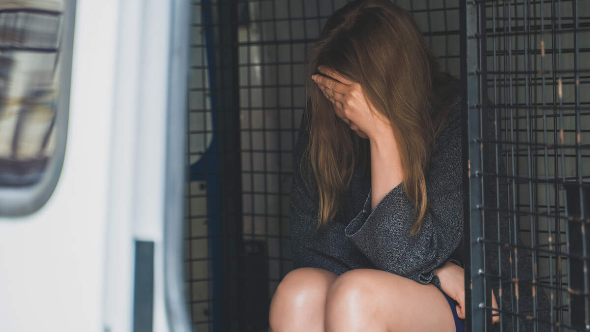 She’s in jail with a city-issued shirt.